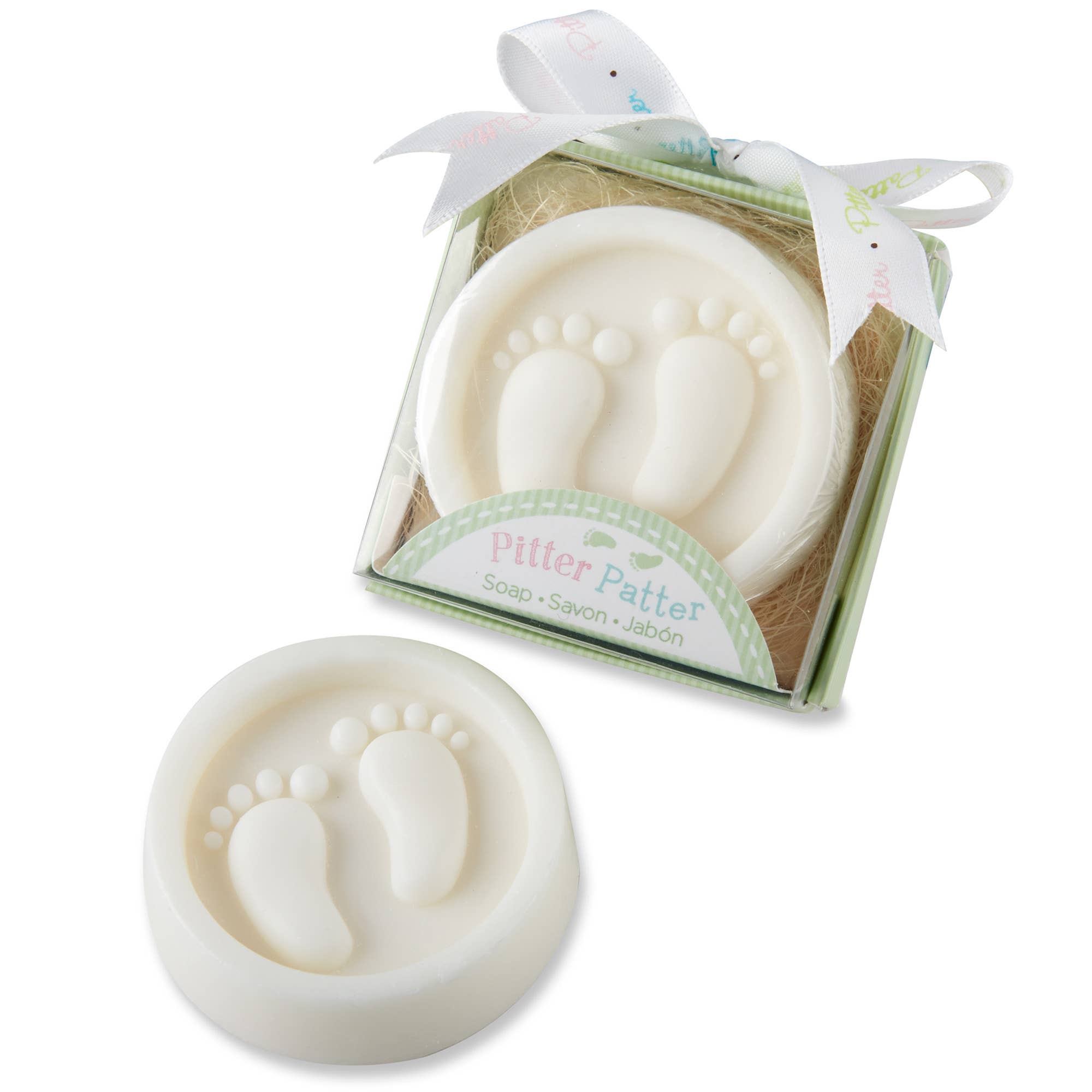 While nothing could ever be as sweet as your newborn baby, this pitter patter soap favor by kate aspen comes pretty close! Imprinted with two adorable footprints, this baby shower soap favor celebrates the birth of your precious little angel in a charming way with your friends and family. The soap party favor comes resting in hay and packaged in a box that's almost as cute as the soap itself, and your party guests will surely appreciate your thoughtfulness when they receive this gift!