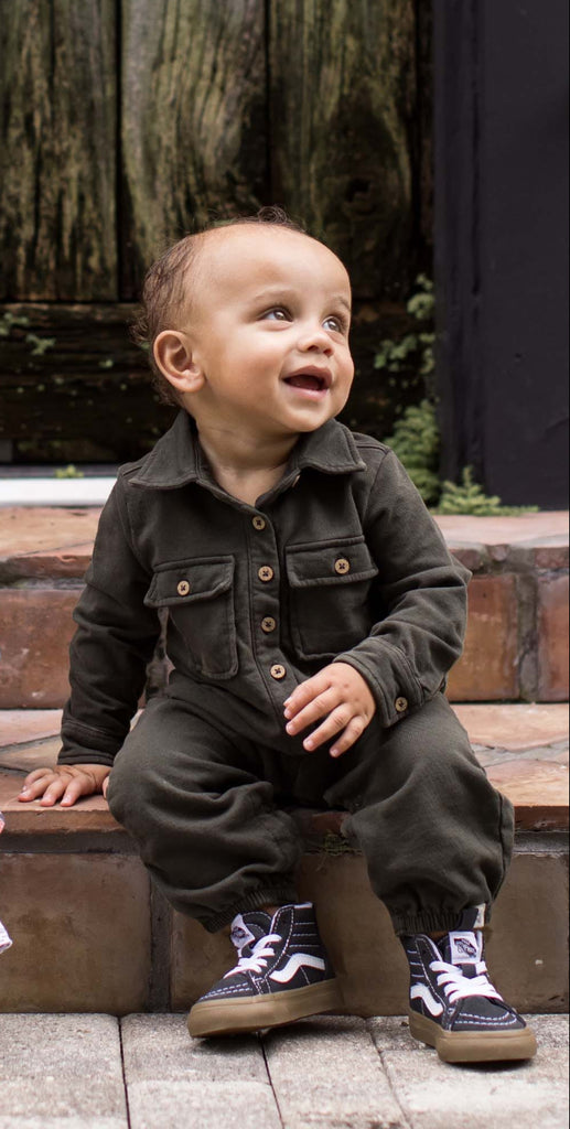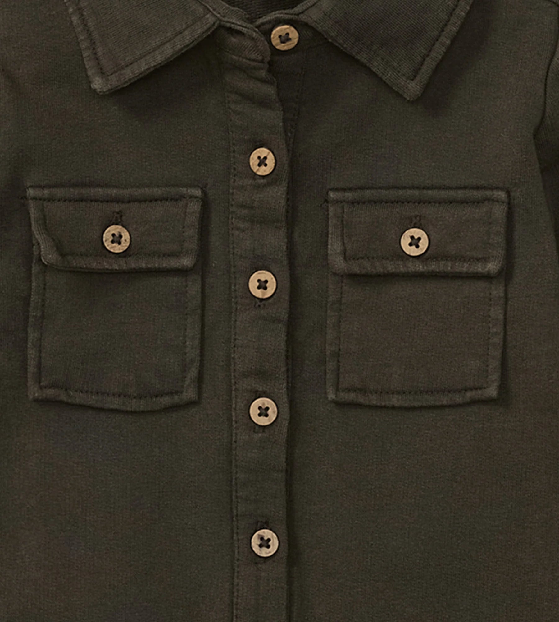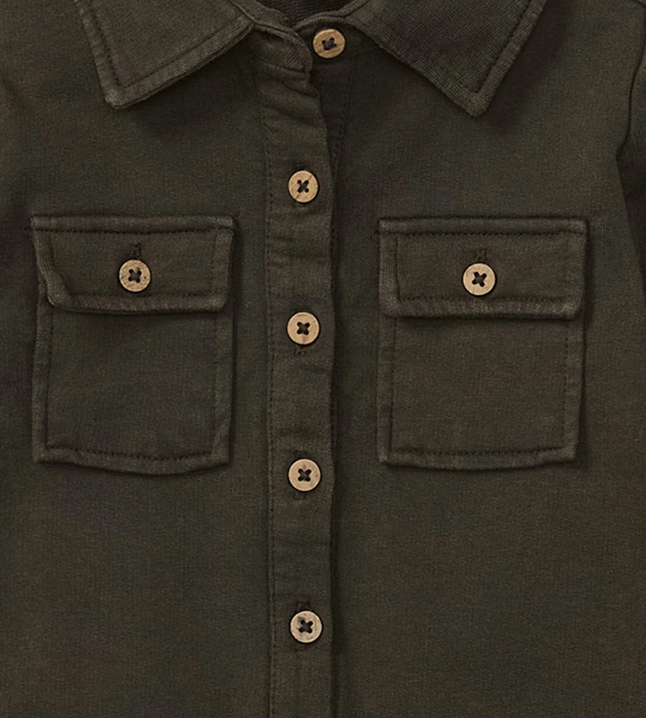 - Functional buttons at sleeve cuffs and snaps at diaper opening