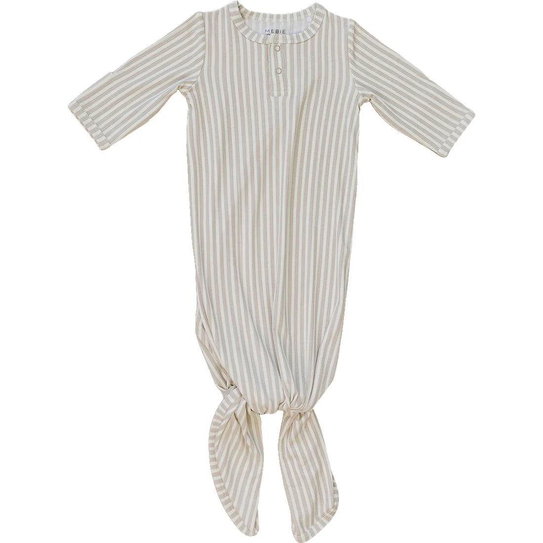 These gowns are size 0-3. They are made out of supremely soft Bamboo Rayon to keep your little one comfortable. We have a variety of gender neutral designs and colors making them perfect for any baby. They have fold over hands and two snaps for easy on and off. We also have shoulder flaps to make it easily pull over your little ones head, we want to make dressing your baby as easy as possible. The bottom is easily tied and untied in a knot for no-fuss diaper changes which makes it a newborn baby essential! These are made out of the same fabric as our stretch swaddles and match the colors of the stretch swaddles, head wraps, and hats.