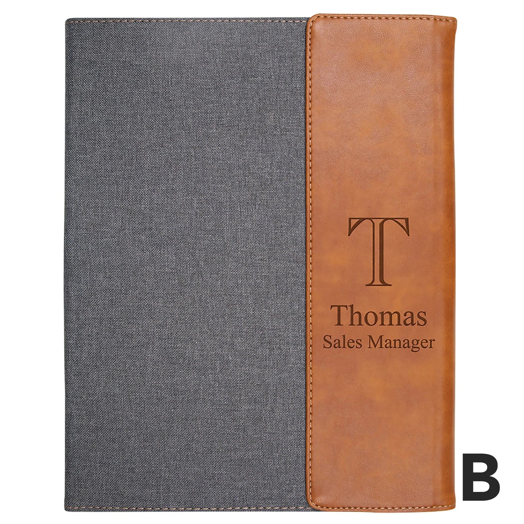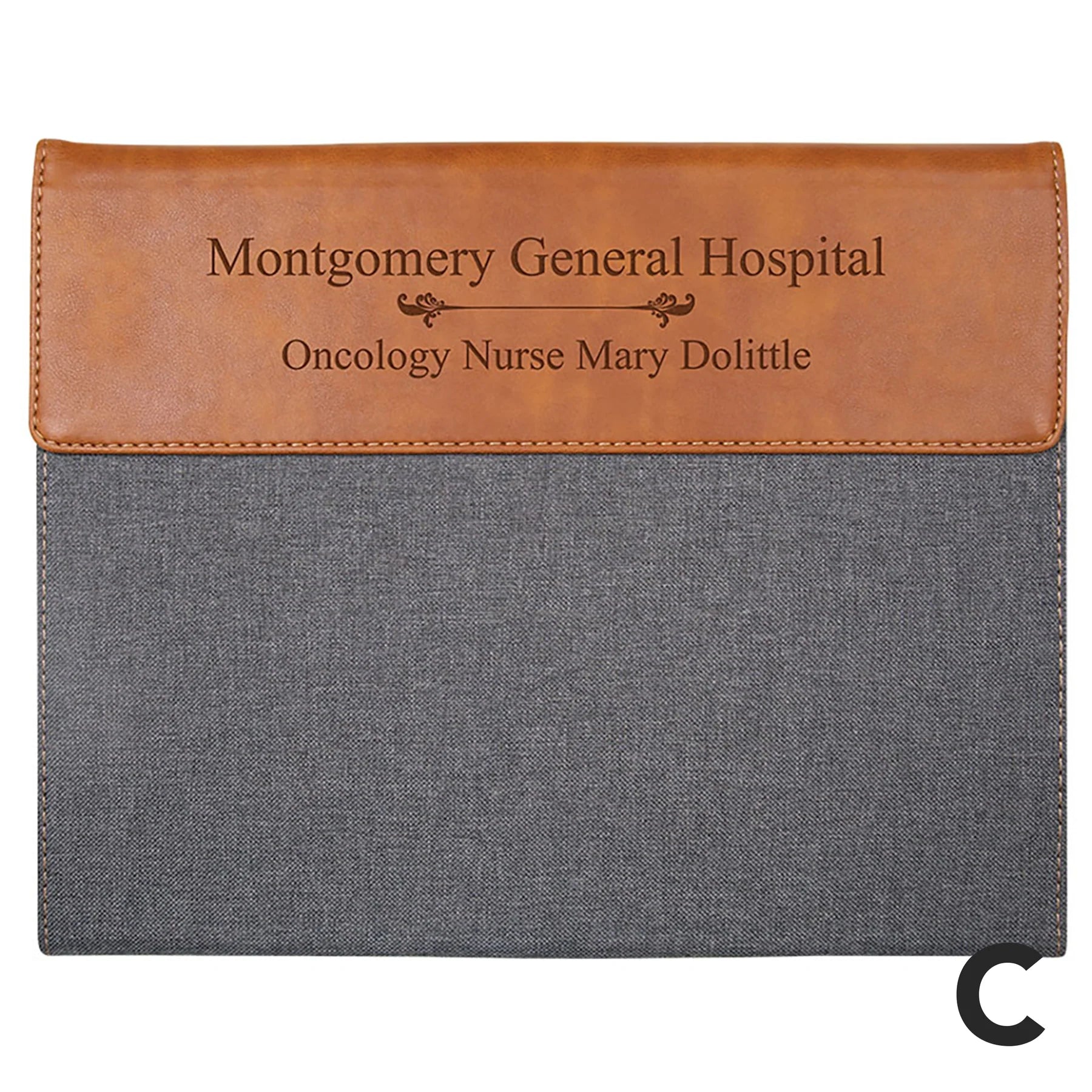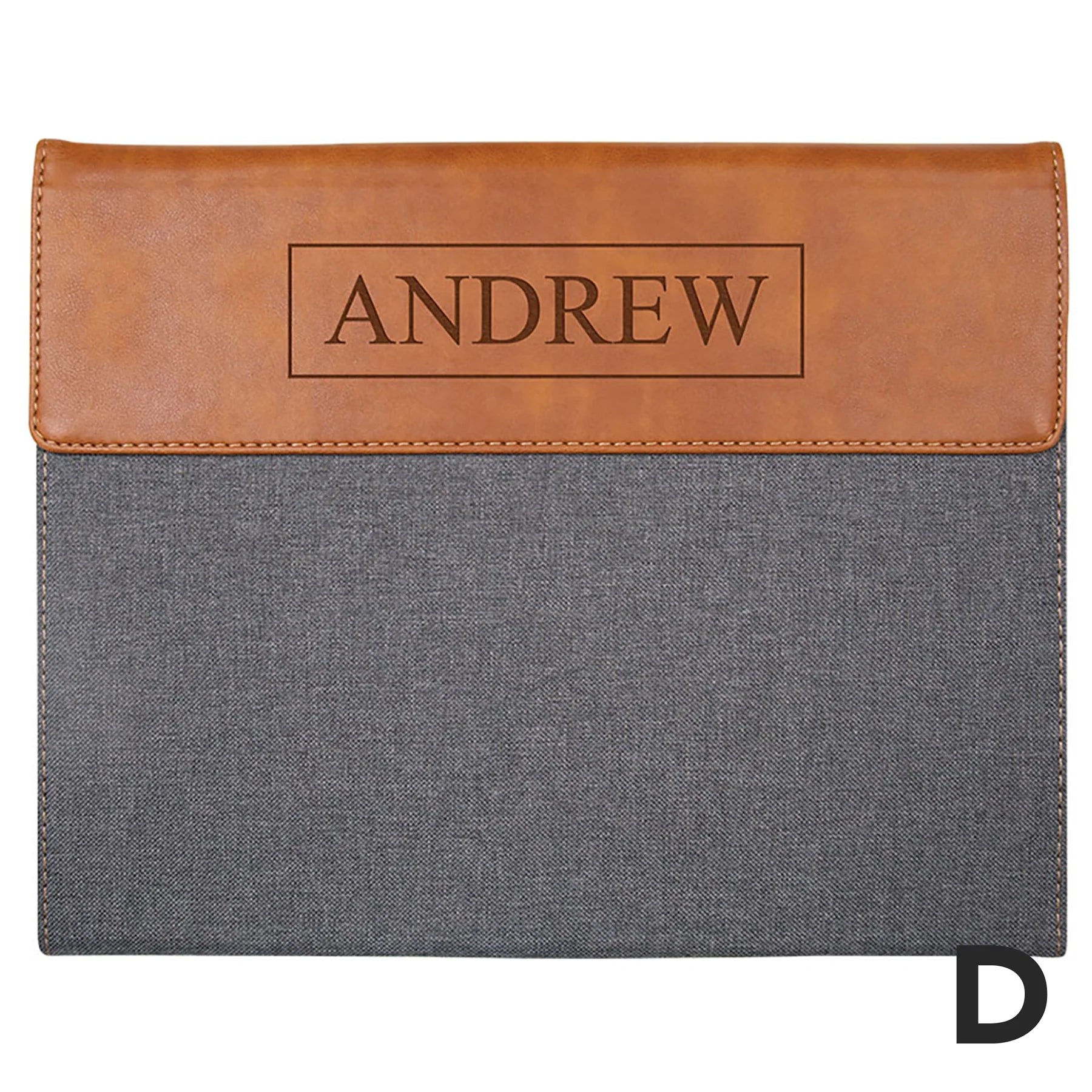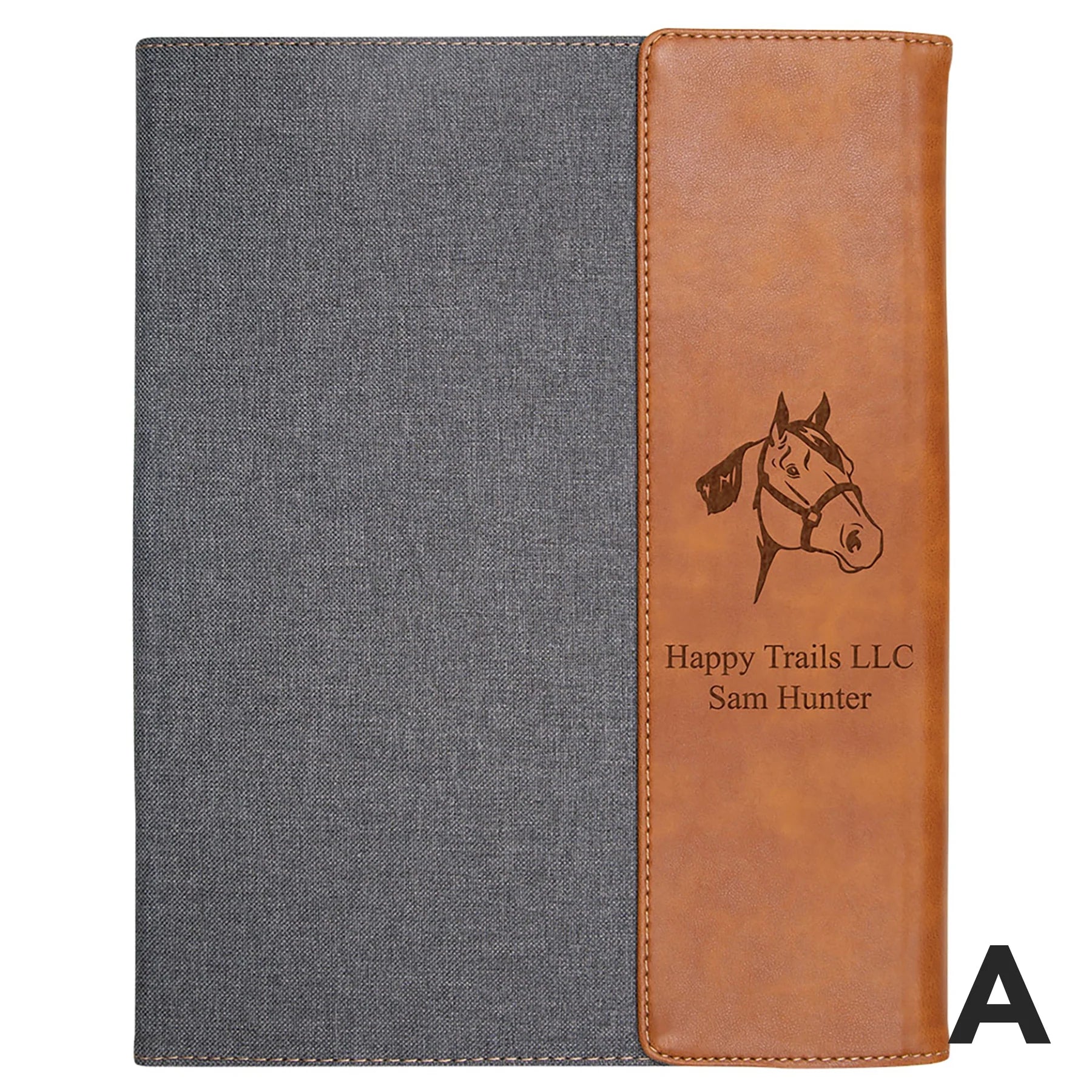 Personalized Grey & Tan Faux Leather Padfolio (Large)