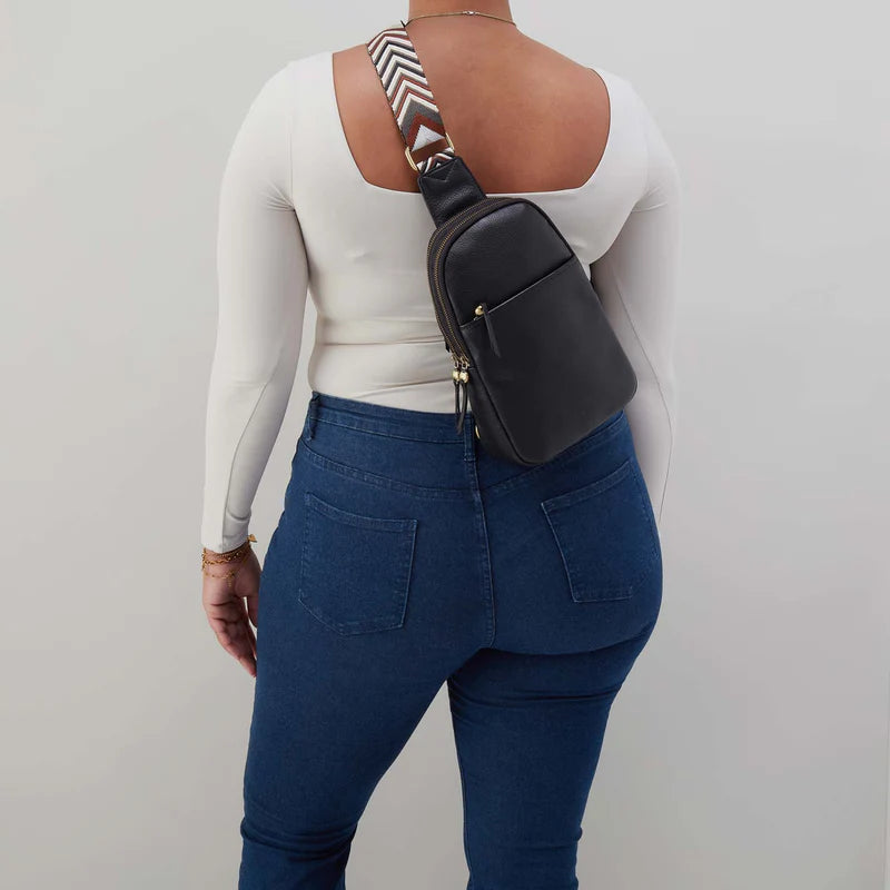 When you have your hands full, Cass Sling’s the hands-free hero right there to help. Plenty of interior space, a new chevron webbing strap, and adjustablity - more than a bag, Cass is your sidekick in style