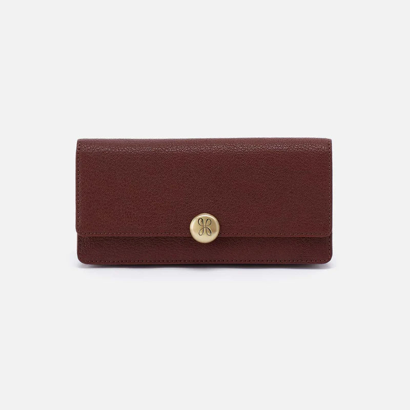 The traditional continental wallet got primped and polished. Hutton effortlessly balances style and function with a magnet closure and signature HOBO journey logo