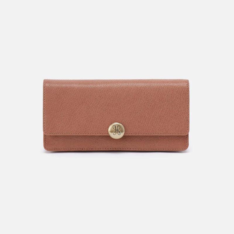 The traditional continental wallet got primped and polished. Hutton effortlessly balances style and function with a magnet closure and signature HOBO journey logo