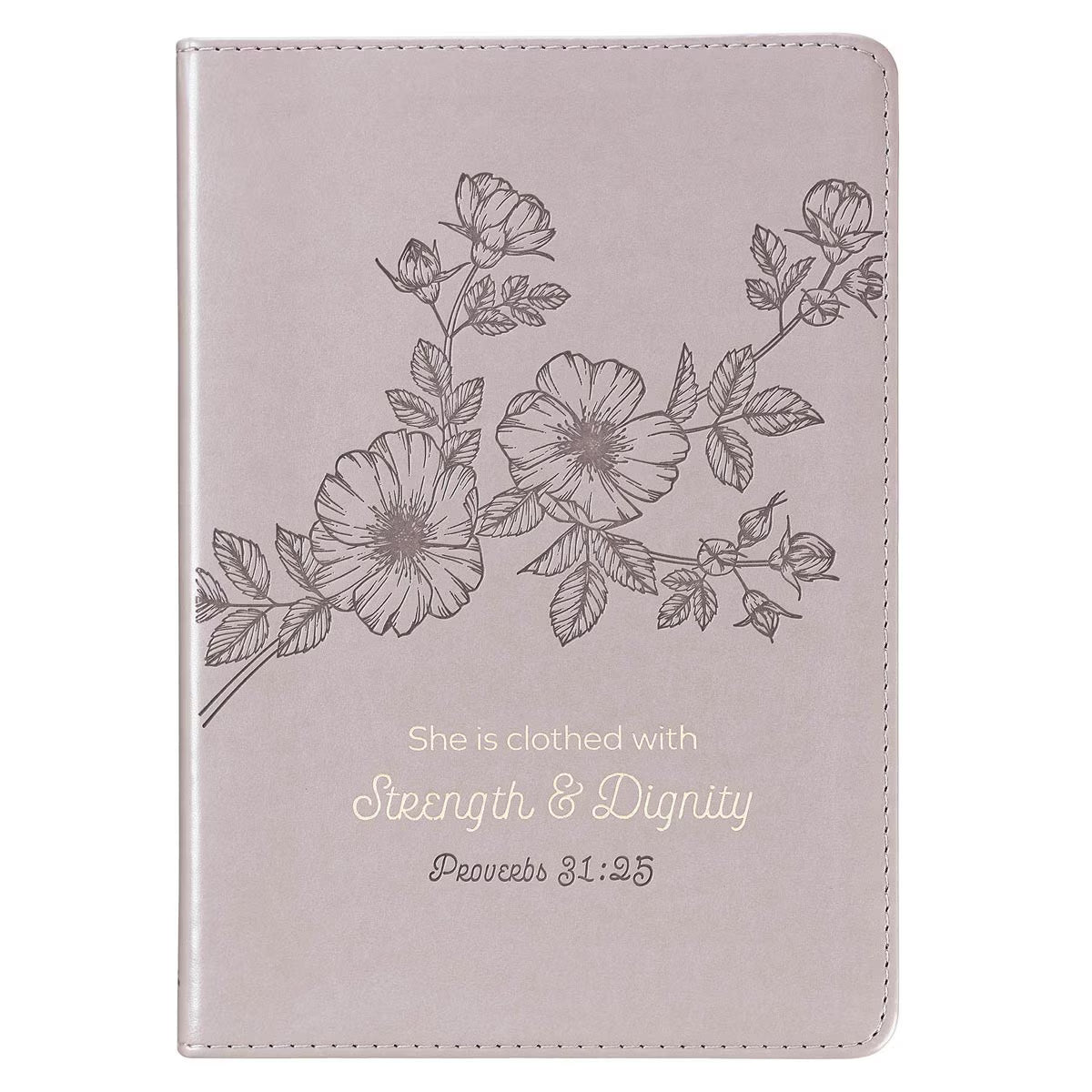Shower your mom, wife, sister, or friend with love on Mother's Day, her birthday, a baby shower, or just because by giving her the Strength and Dignity Taupe Faux Leather Journal, to jot down her musings.