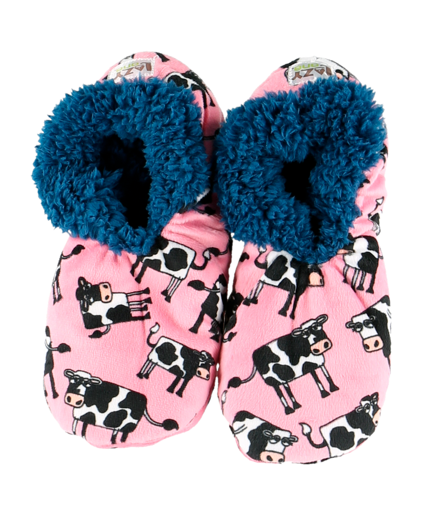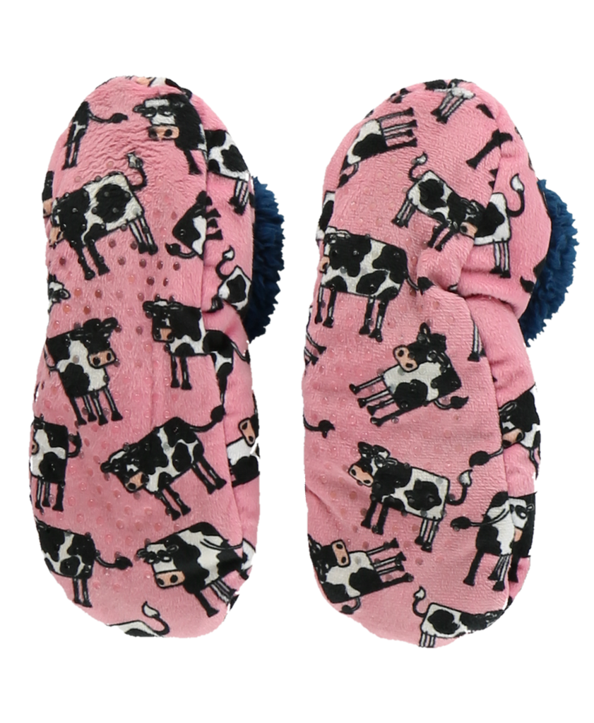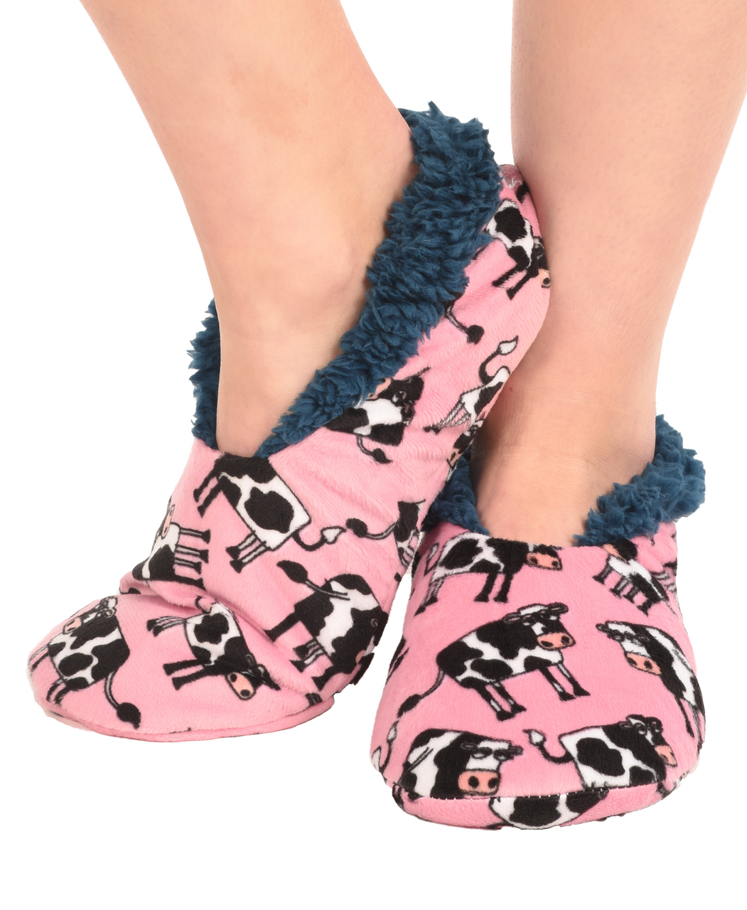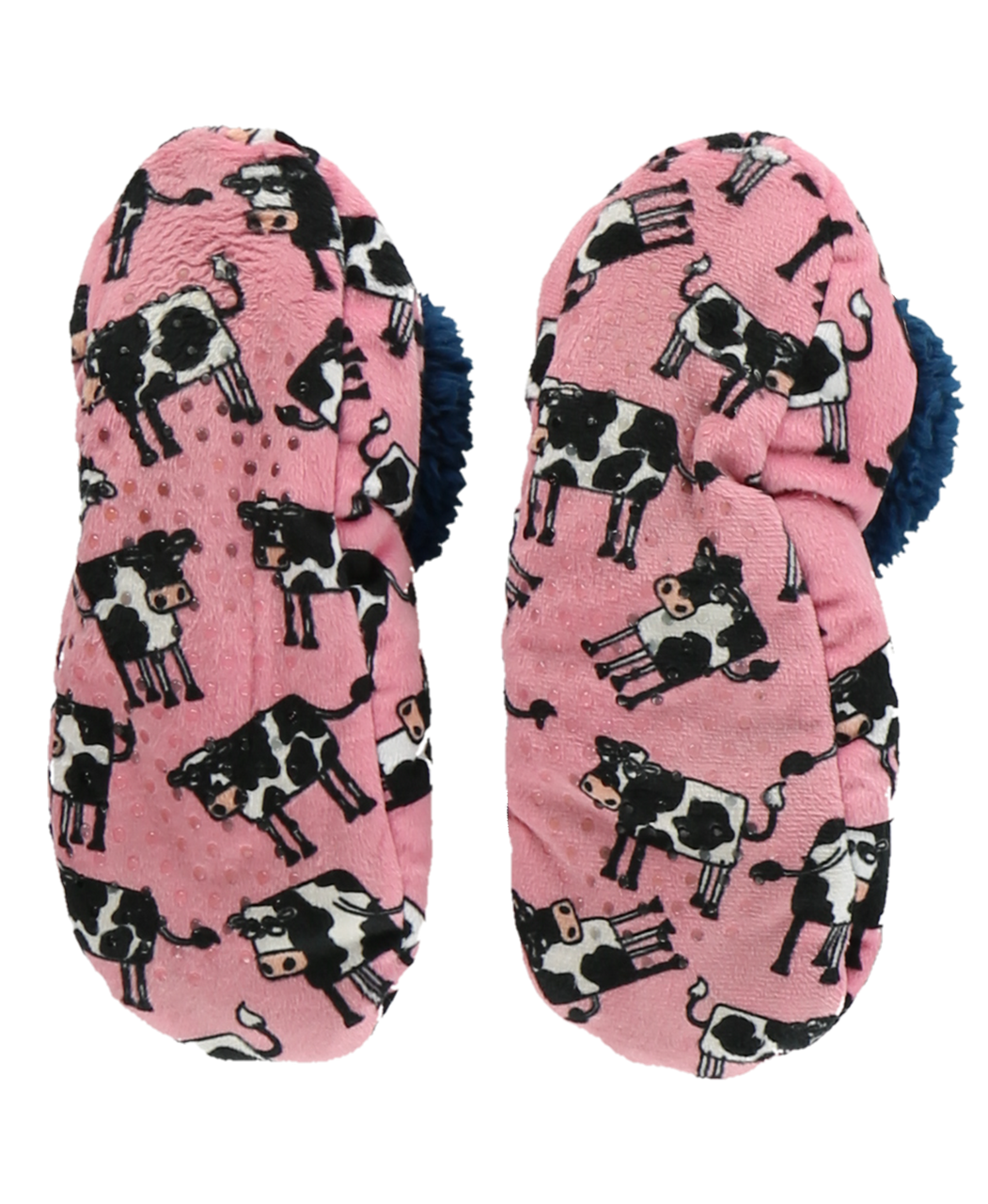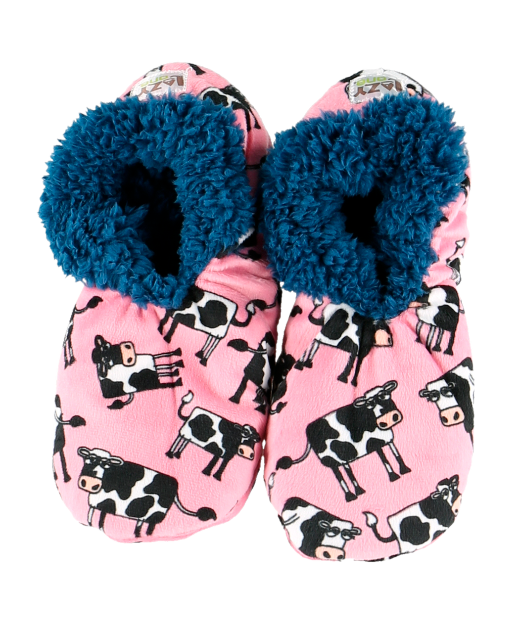 We are moody in the morning and moody after a long day. With our fun cow fuzzy feet, your mood is surely to change! With a thick, fleecy lining on the inside and a soft fleece on the outside, these slippers are the very definition of "comfy!" So when it's time to tread softly, look no further than your Fuzzy Feet! (non-skid on sole.)