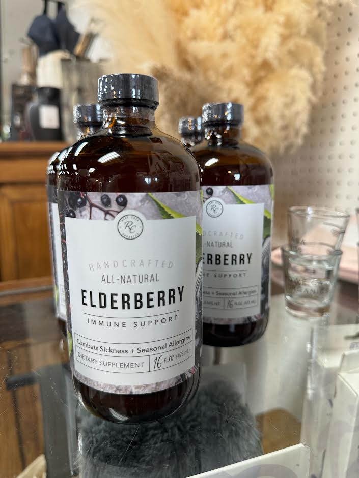 PURIFIED WATER, ORGANIC ELDERBERRIES, RAW HONEY, ORGANIC LEMON JUICE, ORGANIC GINGER ROOT POWDER, ORGANIC VITAMIN C (L-ASCORBIC ACID), ORGANIC CINNAMON POWDER, ORGANIC CLOVE POWDER.