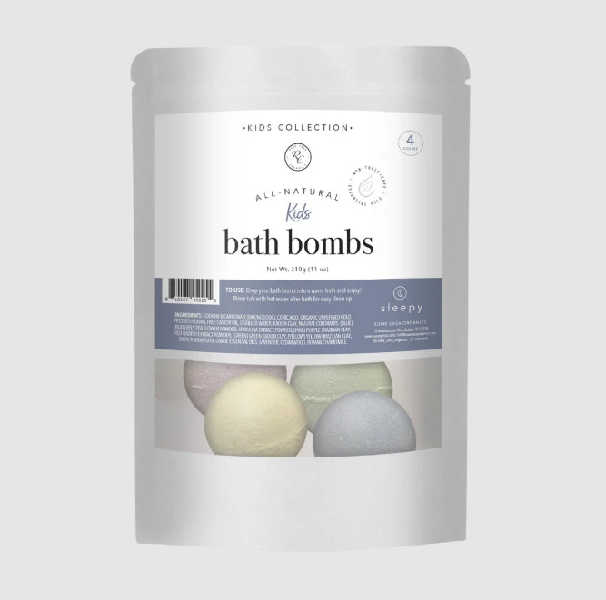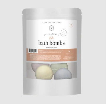 Make bath time fun and exciting for kids without any toxic chemicals! Give your child the very best with these gentle and safe, all-natural bath bombs made with plant-based colorants, and 100% pure and natural therapeutic grade essential oils. They will love watching their colored bath bomb fizz and enjoy the fruity fun scent or be calmed down with our sweet dreams scent. 4 different colors are in each bag (Blue, Pink, Green & Yellow).